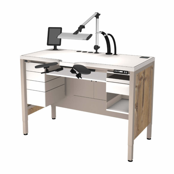 It features two sections – one for watchmakers and one for jewellers – offering variants with accessories specially designed for craftsmen in these two fields. For example, jewellers will find platforms for soldering, and bench skins, and watchmakers will find their essential swan’s necks. This gives you a very accurate idea of the end product you are about to buy. The visuals also help you with planning in the workshops, so you can work out the possible layout for the workbenches.